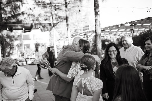 Straying from tradition (and spotlight), the couple and their kids greeted guests as they arrived, creating a cozy and connected feel from the start. At sunset, the family gathered for the processional, with Jim leading the way and the kids forming a halo around Chrystal. After a short ceremony, the group got back to hanging out- complete with s'mores, charcuterie, a game table, and live music.